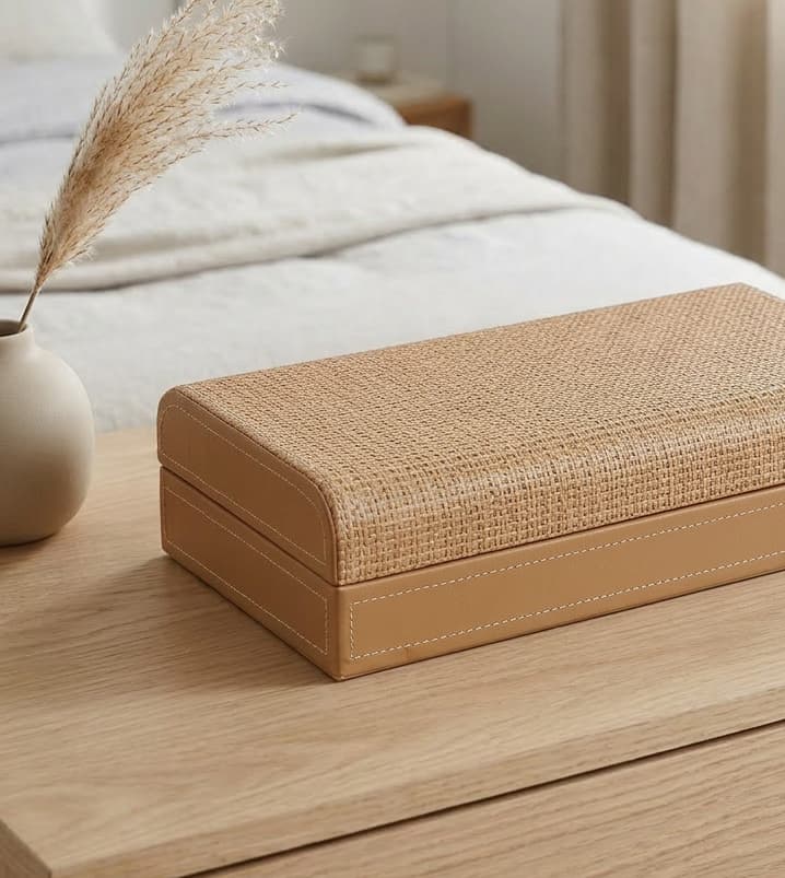 קופסת דמוי עור אלגנטית – סדר יוקרתי לפריטים קטנים, לבית או למשרד.
